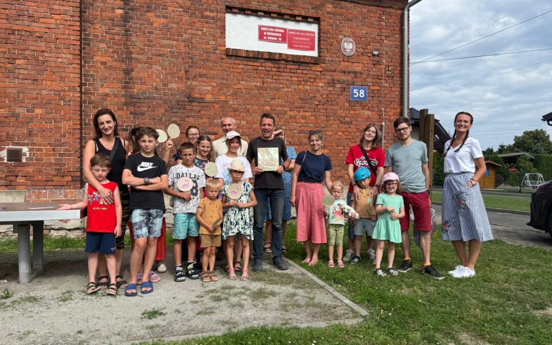 [opis galerii: zdjęcia przedstawiają spotkanie Profesora Tomasza Suleja z dorosłymi dziećmi, które odbyło się w sali Biblioteki w Miedarach. Na zdjęciach widać uczestników i Profesora oraz książkę autorstwa naszego Gościa „Kiedy na Ziemi żyły dinozaury”. W galerii znajduje się również zdjęcie grupowe na zewnątrz budynku Biblioteki]