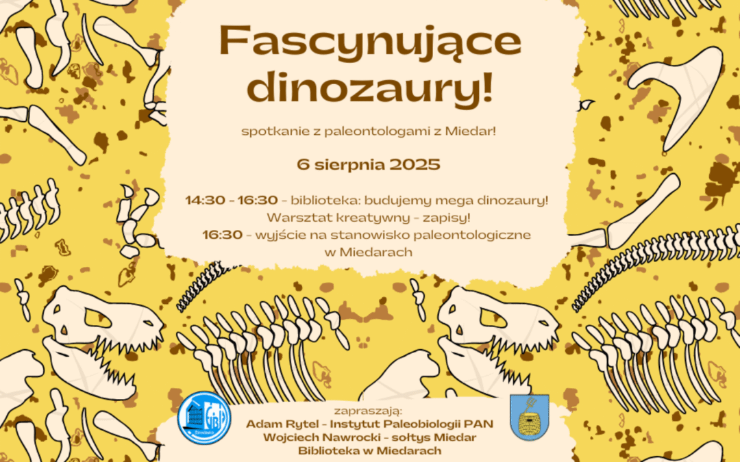 Od 14:30 do 16:30 będziemy budować mega dinozaury wg pomysłu „Moje dzieci kreatywnie”, a zaraz potem wybierzemy się na stanowisko paleontologiczne, na którym będziemy dotykać ziemi, słuchać opowieści i kto wie, może komuś uda się znaleźć swoją skamielinę! To już ostatnie dni pobytu naukowców w Miedarach, nie przegapcie okazji!